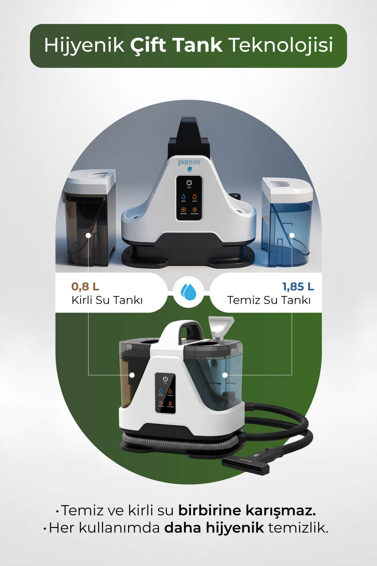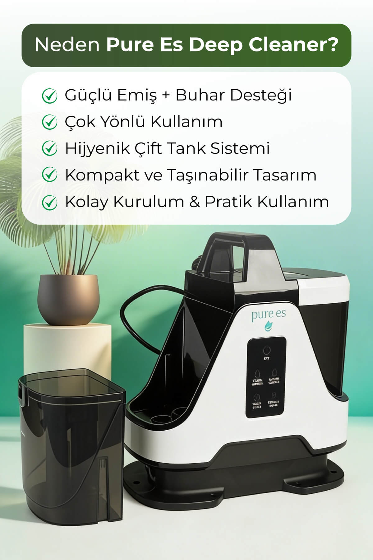 PURE ES DeepCleaner 13.000 Pa | Koltuk Yıkama | Ütüleme | Buharlı Temizleme | PetCare
